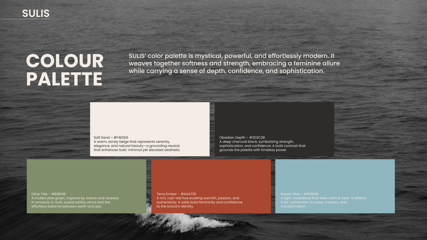 We were approached to create a visual identity that embodies Sulis’s core values of strength, fluidity, and purpose. The goal was to visually translate a brand built for women who refuse to compromise, embracing diversity, sustainability, and confidence.